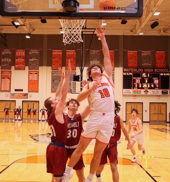 The boys basketball “Battle of Waterloo” took place between Gibault and Waterloo on Saturday afternoon at Waterloo High School, with the Hawks outlasting the Bulldogs, 44-43.