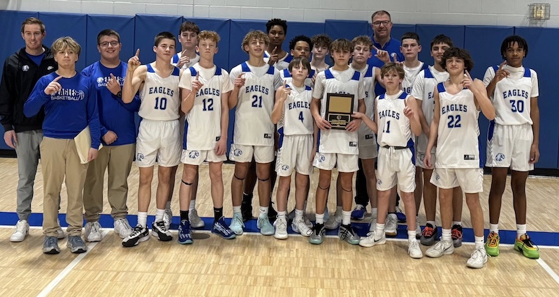 The Republic-Times Team of the Week is the Columbia Middle School eighth grade boys basketball squad. The Eagles finished their season at 22-2 on Jan. 15 by defeating Millstadt in the Cahokia Conference Tournament. Pictured, from left, are Coach Nate Leingang, Manager Damyn Schlemmer, Manager Steven Mueth, Will Kleinschmidt, Trevor Cole, Michael Lehrmann, Koda Hudson, James Munden, Brayden Brooks, Grayson Bosch, Ryker Ramirez, Noah Janssen, Chase Ninnis, Coach Brent Mueller, Brant Hogan, Lucas Woodcock, Max Moss, Landon Sandifer and Kai Barr.