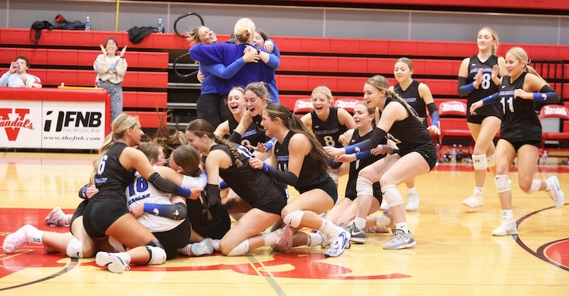 Leading the way on this night for head coach Kelly Landgraf’s squad were sisters Ava and Marly Mathews. Ava, a senior, recorded six kills and 14 assists. Marly, a sophomore, had eight kills. Other standouts for the Eagles were Claire Sandstrom (eight kills), Kinley Jany (10 points) and Samantha Spruill (nine assists).