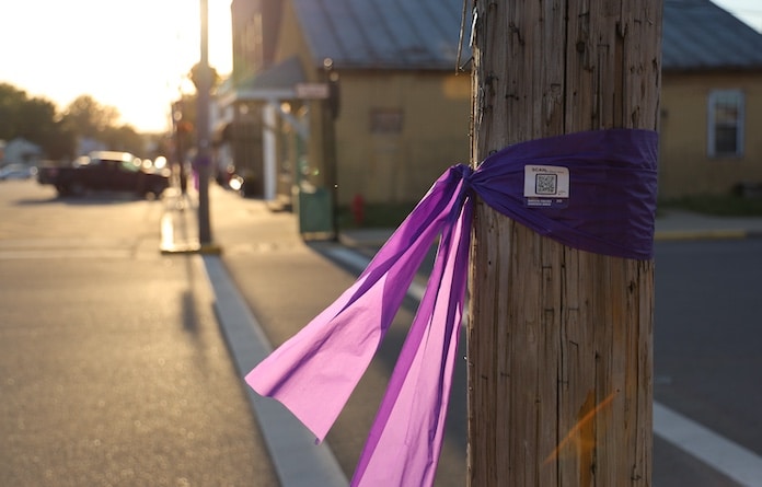 Folks visiting downtown Waterloo and other spots around the county might notice purple ribbons wrapped around light polls or other fixtures along the street.