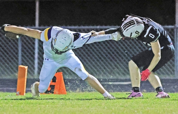 Pictured, Dupo’s Thinh Staggs (right) tries to keep an opponent out of the endzone during a recent home game.