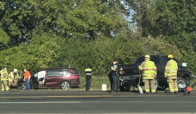 Emergency personnel responded shortly before 9:20 a.m. Friday to a two-vehicle crash on Route 3 at Kolmer Avenue in Waterloo.
