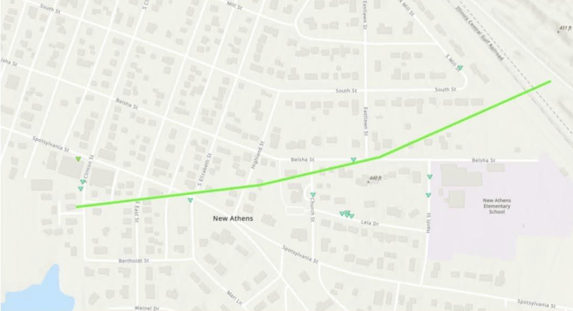 The National Weather Service in St. Louis confirmed Monday morning that an EF-1 tornado landed just west of New Athens at 5:47 p.m. Sunday, causing damage to a few structures and trees before lifting just east of town. Per a map provided by the weather service, this tornado touched down on Clinton Street just south of Spotsylvania Street and continued east before lifting just north of New Athens Elementary School.