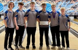 The Pirates won all five matches in last week’s Roxana Invitational to capture the first place plaque. Valmeyer defeated Marquette, Piasa Southwestern and Father McGivney earlier in the week before toppling Civic Memorial and Roxana in two sets each on Saturday to win the title. (submitted photo)